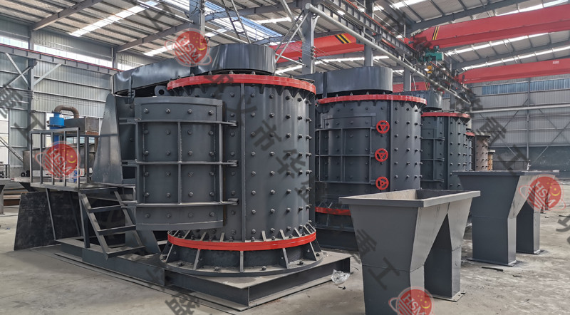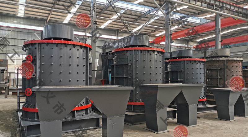 物料由机器上部垂直落入高速旋转的叶轮内,在高速离心力的作用下,与另一部分以伞状形式分流在叶轮四周的物料产生高速撞击与粉碎,物料在互相撞击后,又会在叶轮和机壳之间以物料形成涡流多次的互相撞击、摩擦而粉碎,从下部直通排出,形成闭路多次循环,由筛分设备控制达到所要求的成品粒度。